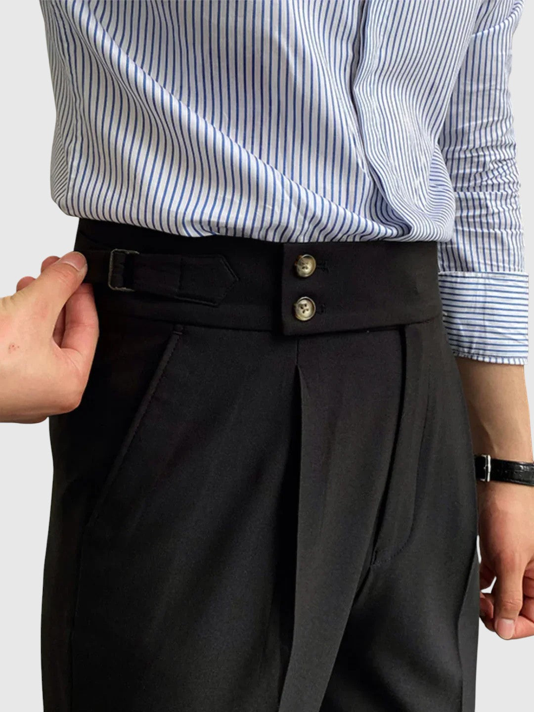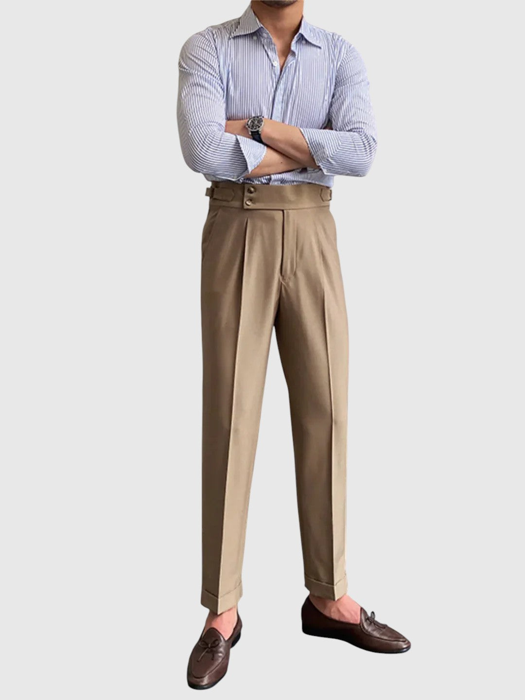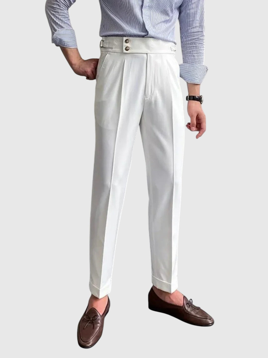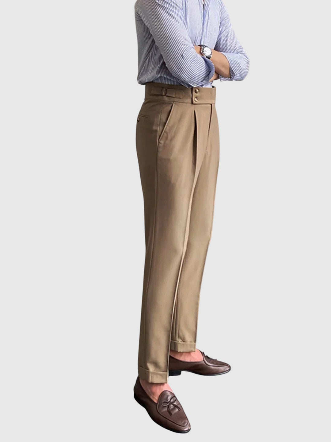 Τα παντελόνια Μόριτς Βίντατζ έχουν σχεδιαστεί για άνδρες που εκτιμούν το στυλ, εμπνευσμένο από την κληρονομιά, με εκλεπτυσμένο τόνο. Κατασκευασμένα από υψηλής ποιότητας ύφασμα, προσφέρουν άνετη, αλλά δομημένη κοπή - ιδανικά για κομψές, καθημερινές εμφανίσεις ή σύνολα εμπνευσμένα από το βίντατζ στυλ.