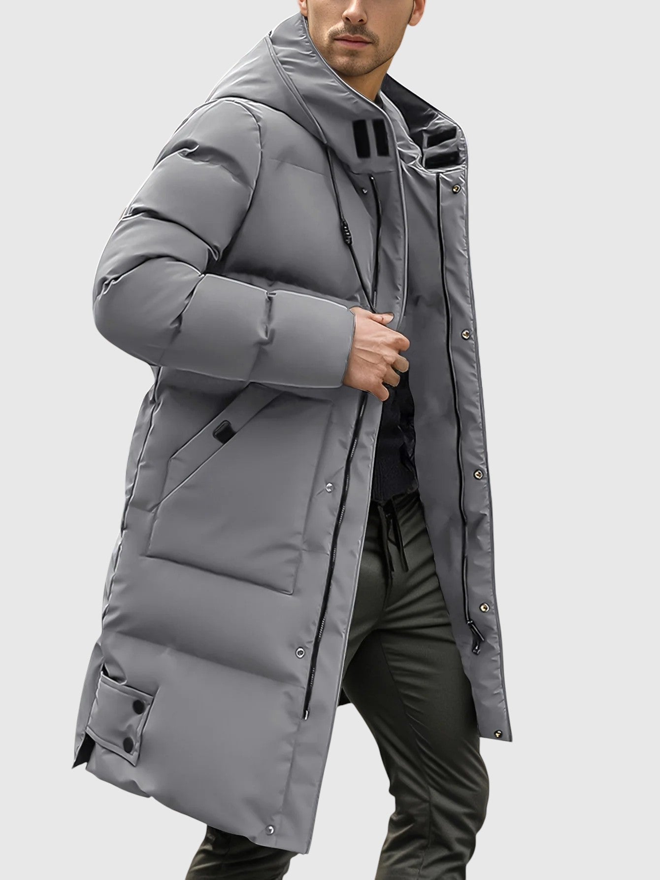 Το μακρύ παλτό με μοντέρνο σχέδιο έχει σχεδιαστεί για να προσφέρει μέγιστη προστασία και άνεση τις κρύες μέρες. Η πουπουλένια επένδυση παρέχει αποτελεσματική μόνωση, ενώ η κουκούλα και ο ψηλός γιακάς ενισχύουν την προστασία από τον άνεμο και τις χαμηλές θερμοκρασίες. Οι λειτουργικοί θήκες και το κλείσιμο με κουμπιά προσθέτουν πρακτικότητα στο κομψό σχέδιο, κάνοντάς το αυτό το άρθρο καθολικό για την αστική ζωή και την ελεύθερη ώρα.