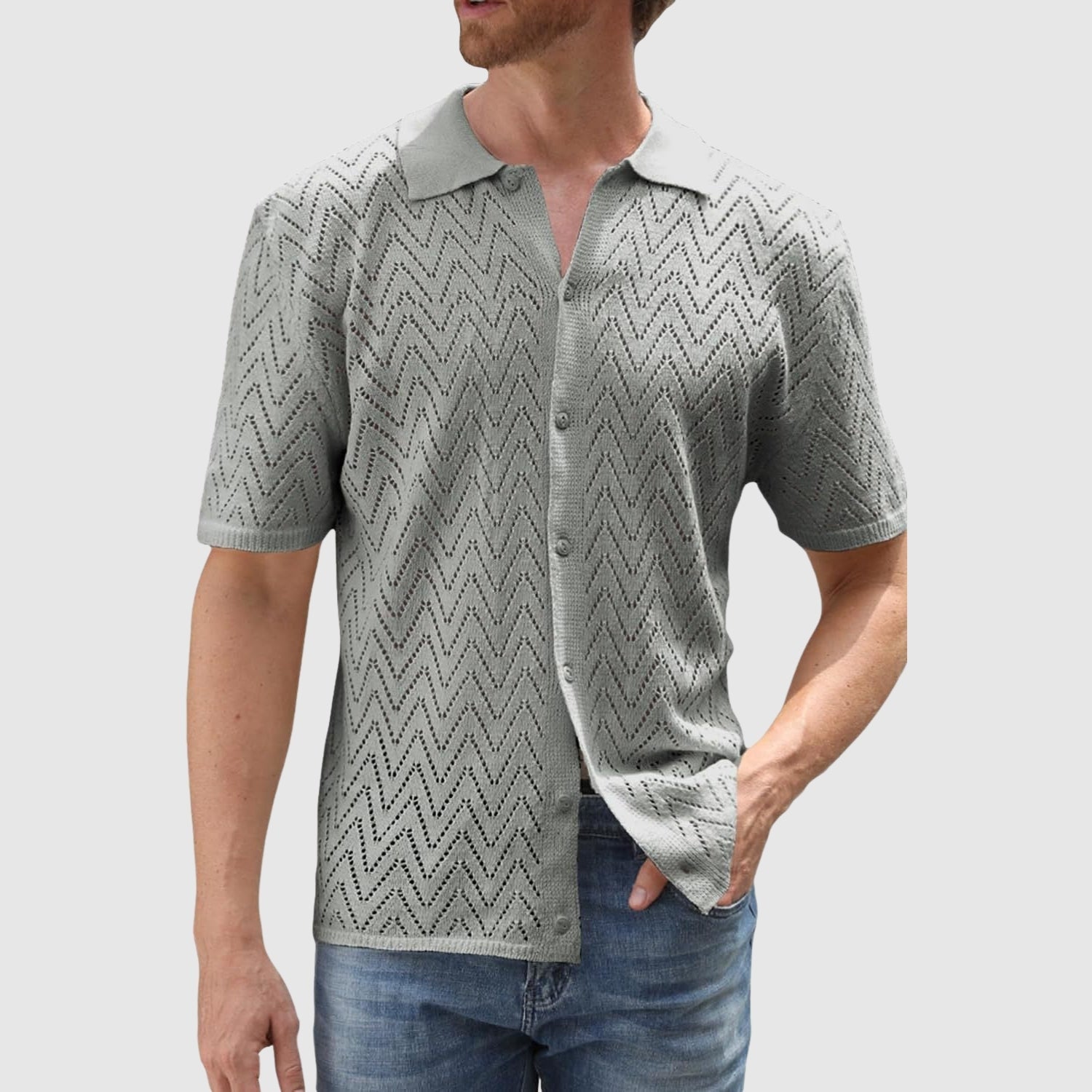 Τολμήστε να φορέσετε ρούχα που συνδυάζουν φρεσκάδα, υφή και μοντέρνο στυλ. Αυτό το πλεκτό πουκάμισο με σχέδιο ζιγκ-ζαγκ προσφέρει μοντέρνα και εκλεπτυσμένη εμφάνιση, χωρίς να θυσιάζει την άνεση. Χάρη στην ελαφριά και αναπνεύσιμη ύφανση, είναι ιδανικό για κάθε ανεπίσημη περίσταση ή καλοκαιρινή εκδήλωση.