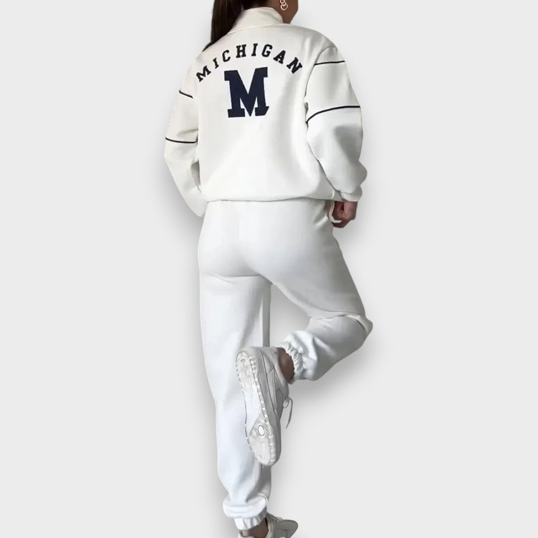 Το σύγχρονο σετ lounge εντυπωσιάζει με τις απλές γραμμές και τον σπορ-κομψό σχεδιασμό του. Ιδανικό για χαλαρές στιγμές στο σπίτι καθώς και για μια casual εμφάνιση εν κινήσει. Με την άνετη γραμμή και το υψηλής ποιότητας υλικό, αυτό το σύνολο συνδυάζει τη λειτουργικότητα και το στυλ σε υψηλό επίπεδο.
