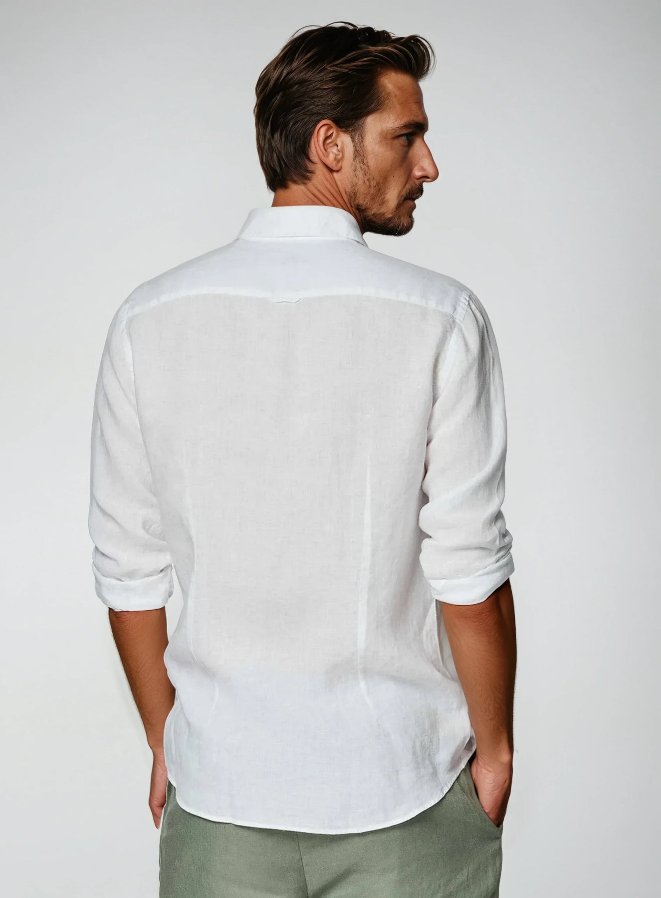 Η καθαρή λευκή απόχρωση δίνει σε αυτό το λινό πουκάμισο μια φρέσκια και διαχρονική εμφάνιση, κατάλληλη για κάθε περίσταση. Συνδυάστε το με ανοιχτόχρωμα παντελόνια ή chinos για μια καλοκαιρινή και εκλεπτυσμένη εμφάνιση ή φορέστε το με σκούρα παντελόνια για μια κλασική και κομψή εμφάνιση. Χάρη στο διαχρονικό του σχέδιο, αυτό το πουκάμισο είναι ένα απαραίτητο κομμάτι σε κάθε γκαρνταρόμπα.