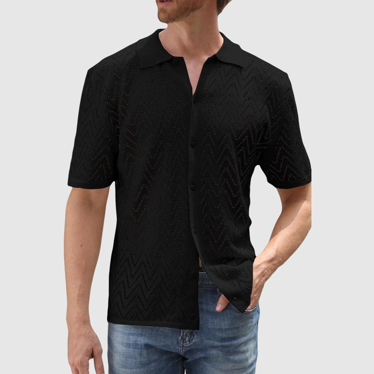Προσπαθήστε να φοράτε ρούχα που συνδυάζουν φρεσκάδα, υφή και μοντέρνο στυλ. Αυτό το κομψό πουκάμισο με σχέδιο ζιγκ-ζαγκ προσφέρει μια μοντέρνα και εκλεπτυσμένη εμφάνιση χωρίς να θυσιάζει την άνεση. Χάρη στο ελαφρύ και αναπνεύσιμο ύφασμα, είναι ιδανικό για κάθε ειδική περίσταση ή καλοκαιρινή εκδήλωση.